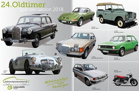 Herzlichen Dank an die Spender der automobilen Klassiker, die in jedem Jahr tolle Preise zur Verfügung stellen, um Menschen mit Behinderung zu unterstützen! Diese attraktiven Klassiker warten in diesem Jahr wieder auf glückliche Gewinner: